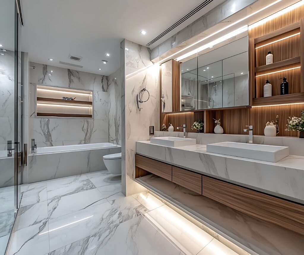 MG Construction has built countless bathrooms in various regions of the United States. The company is recognized for its quality, efficiency, and high standard of finish. With extensive experience in the American market, it delivers modern and functional projects.Each project is executed with attention to detail and top-of-the-line materials.MG Construction is a benchmark for reliability and excellence in bathroom construction.
